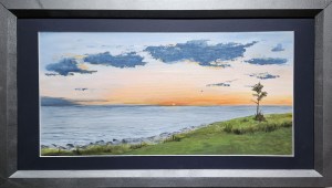 Tilghman Island Evening (2022) as seen from the southernmost point of Tilghman Island. 14″ x 26″ framed