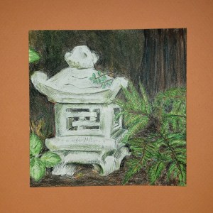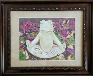 Peace Frog (2016) is a color pencil drawing of my garden frog. 14″ x 17″ framed