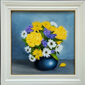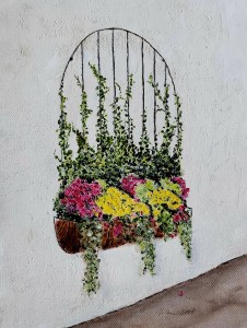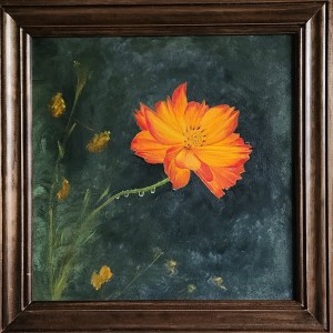 The Rose Petal (2023) is a painting of a floral design I arranged for my local garden club. 17″ x 17″ framed