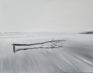 Reflection of a Tree (2022) A lone tree on the beach spoke to me. 22″ x 28″