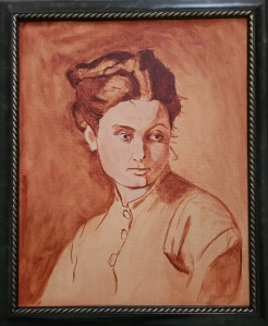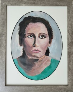 Her face is still, but I sense she has many things to say. (2021) 19″ x 23″ framed
