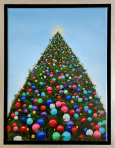 Looking up at the tree near the skating rink in Atlantic Station, Atlanta. Merry Christmas (2022) 14″ x 18″ framed