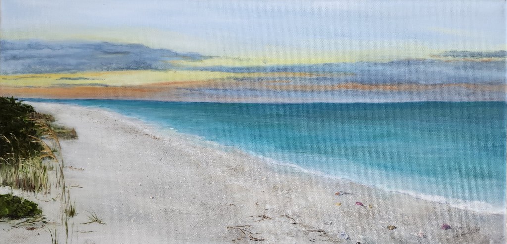 Amber waves (2023) along the Atlantic coast. 12″ x 22″ framedSanibel Memories (2023)