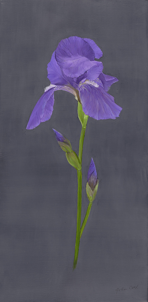 An iris from my garden served as the model for The Purple Iris (2024) 12×22