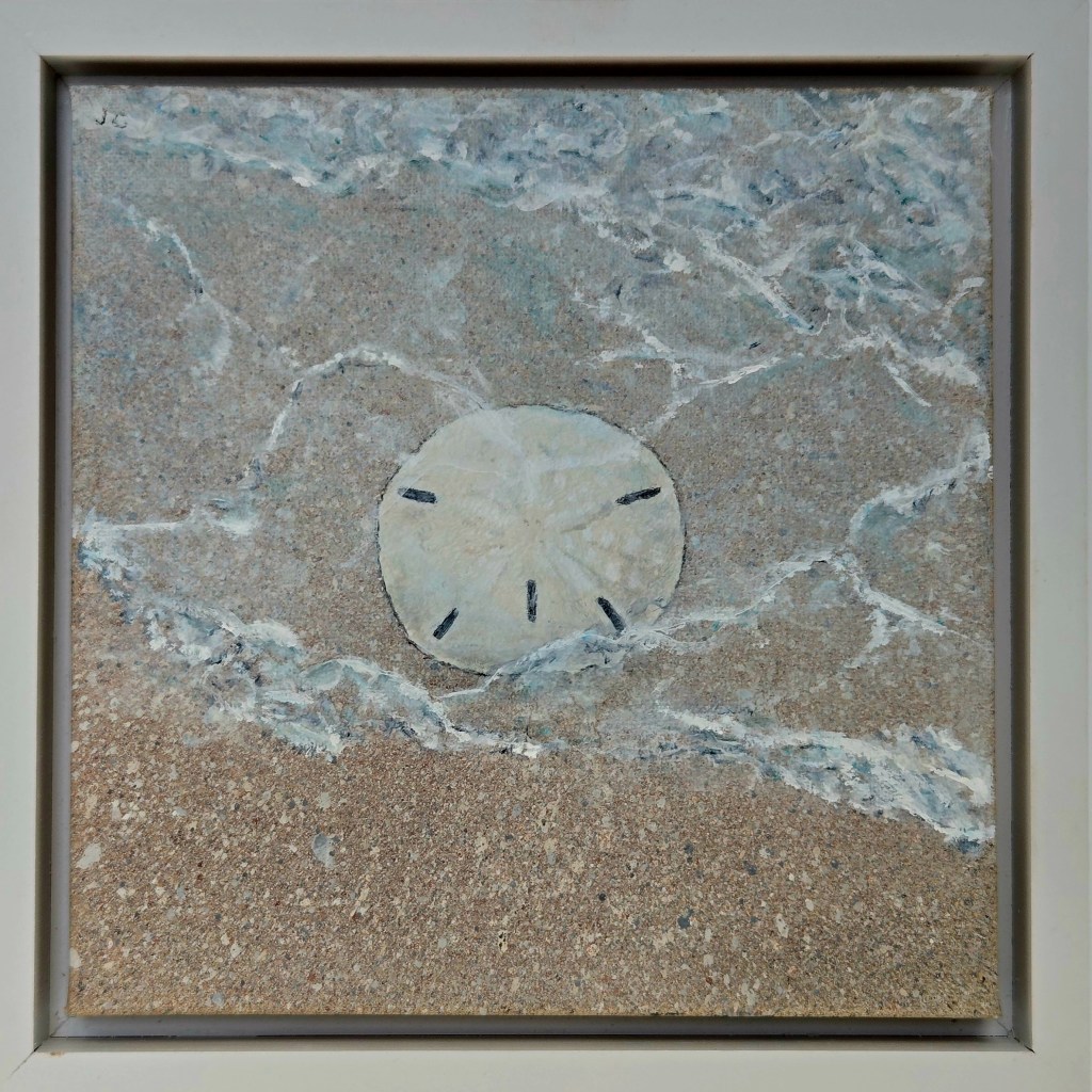A beautiful sand dollar at the edge of the water, The Sand Dollar (2025) 9×9 framed